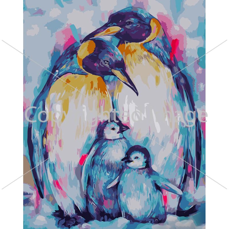 Картина за номерами Strateg ПРЕМІУМ Сім'я пінгвінів розміром 40х50 см (GS1052)
