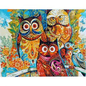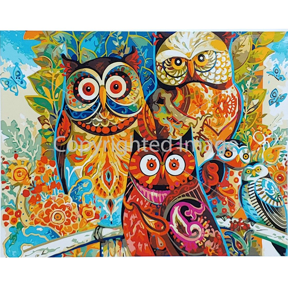 Картина за номерами Strateg ПРЕМІУМ Сім'я совушек розміром 40х50 см (GS013)