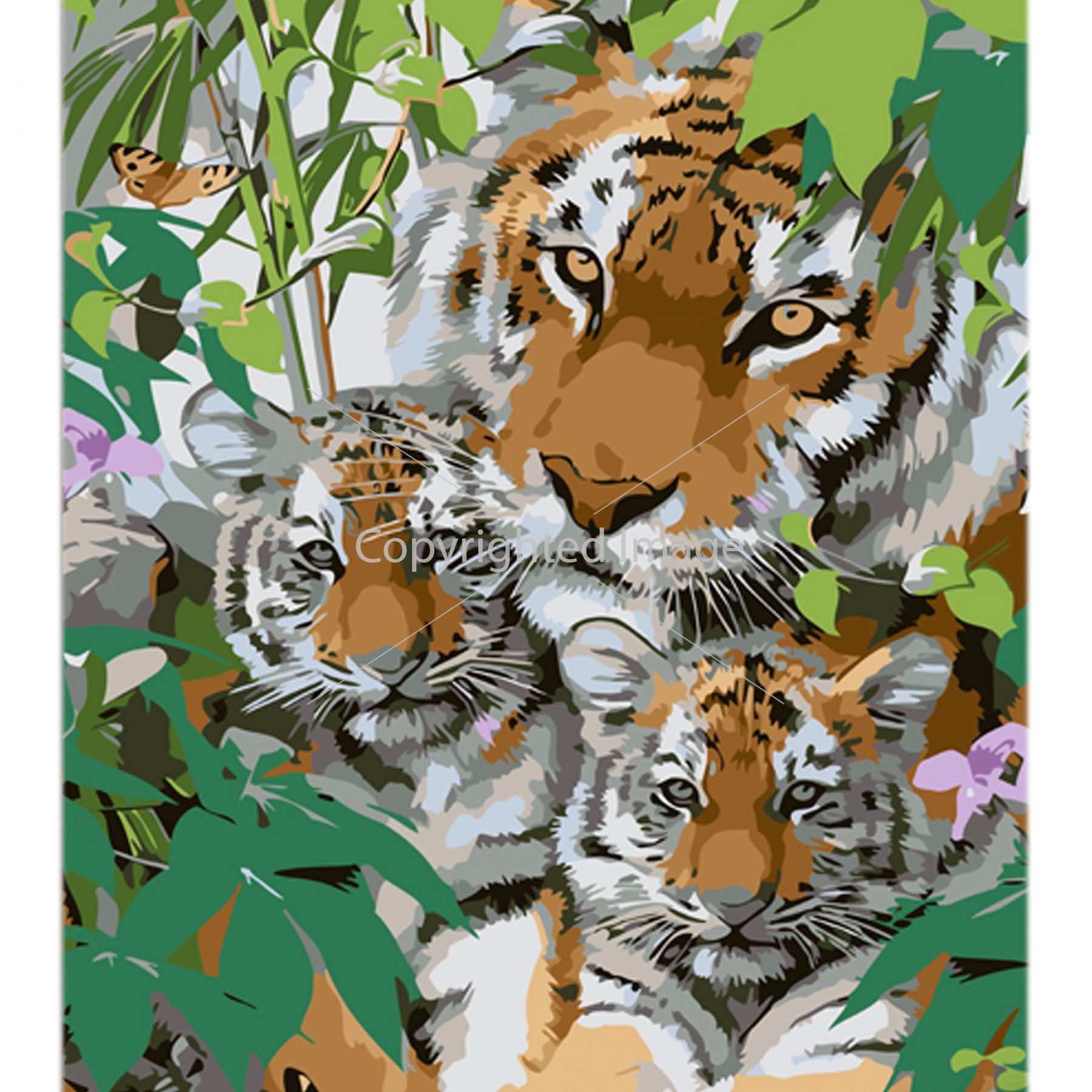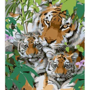 Картина за номерами Strateg ПРЕМІУМ Сім'я тигрів з лаком та з рівнем розміром 30х40 см (LY45)