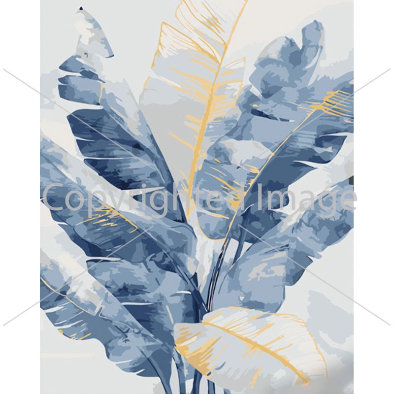 Картина за номерами Strateg ПРЕМІУМ Синє листя з лаком розміром 40х50 см (GS1084)