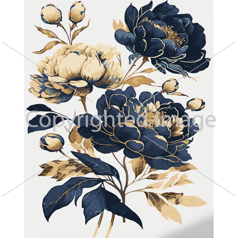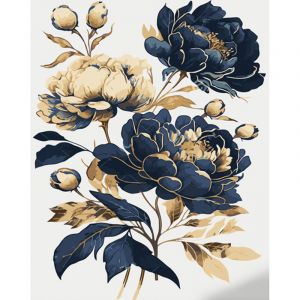 Картина за номерами Strateg ПРЕМІУМ Синьо-золоті півонії з лаком та з рівнем розміром 40х50 см (GS1449)