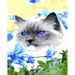 Картина за номерами Strateg ПРЕМІУМ Синьооке чудо з лаком розміром 30х40 см (SS-6513)