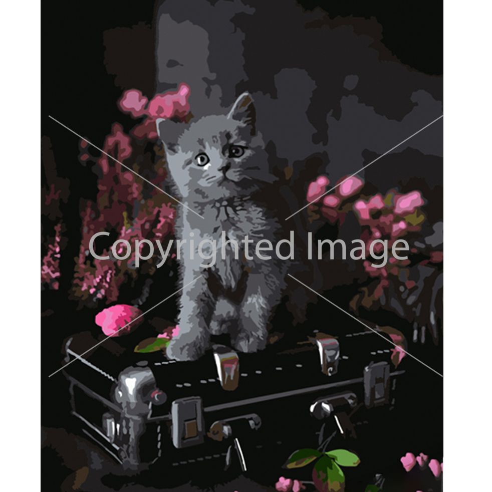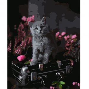 Картина за номерами Strateg ПРЕМІУМ Сіре кошеня у квітах розміром 40х50 см (HH033)