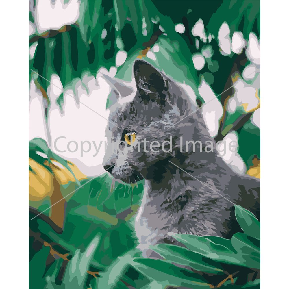 Картина за номерами Strateg ПРЕМІУМ Сіреньке кошеня розміром 40х50 см (GS227)