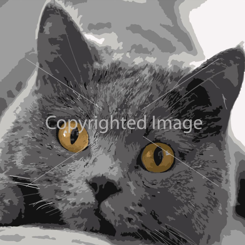 Картина за номерами Strateg ПРЕМІУМ Сірий котик розміром 40х40 см (SK016)