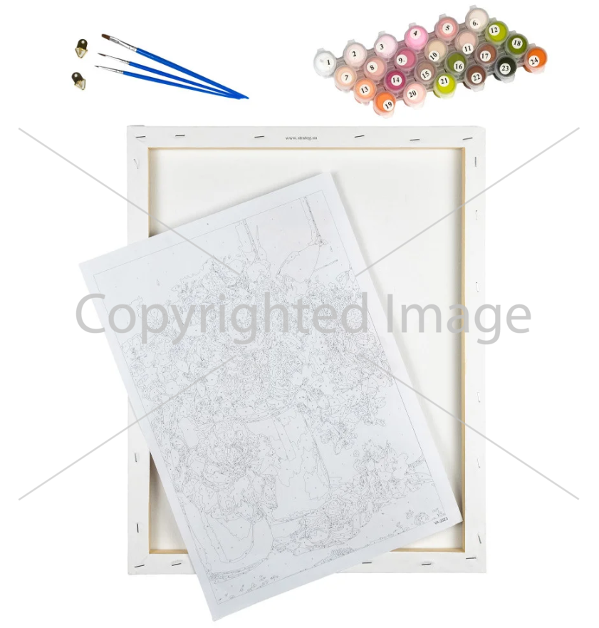 Комплектація:Полотно із клейовим шаром; дерев'яний підрамник; акрилові стрази згідно з комплектацією набору; пінцет для страз; спеціальна ручка-стилус для роботи зі стразами; гель-клей; лоток для сортування страз.