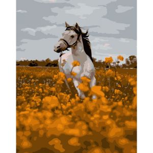 Картина за номерами Strateg ПРЕМІУМ Скакун у полі розміром 40х50 см (DY249)