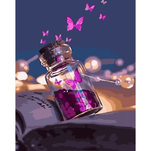 Картина за номерами Strateg ПРЕМІУМ Скляночка метеликів з лаком розміром 40х50 см (SY6760)