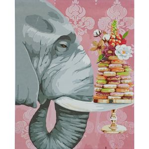 Картина за номерами Strateg ПРЕМІУМ Слон з солоденьким з лаком розміром 40х50 см (SY6910)