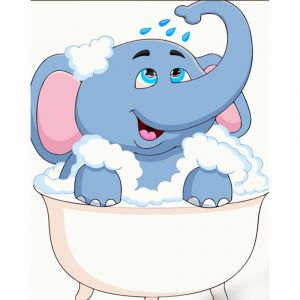 Картина за номерами Strateg ПРЕМІУМ Слоник у ванній кімнаті з лаком розміром 30х40 см (SS6727)