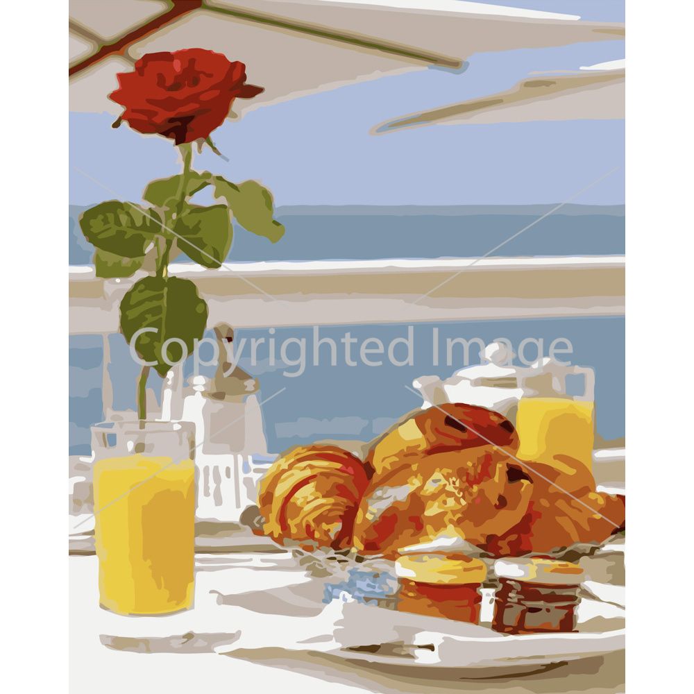 Картина за номерами Strateg ПРЕМІУМ Сніданок з видом на море розміром 40х50 см (GS520)