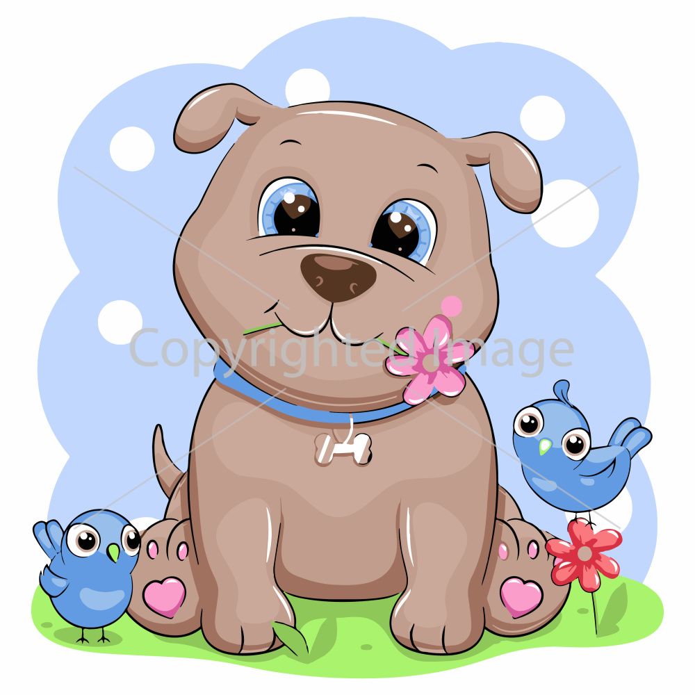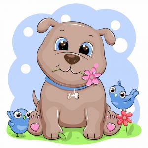Картина за номерами Strateg ПРЕМІУМ Собаченя з птахами з лаком та з рівнем розміром 30х30 см (ES-0845)