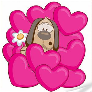 Картина за номерами Strateg ПРЕМІУМ Собака з сердечками та квітами з лаком та з рівнем розміром 30х30 см (ES-0866)