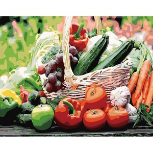 Картина за номерами Strateg ПРЕМІУМ Соковиті овочі з лаком розміром 40х50 см SY6147