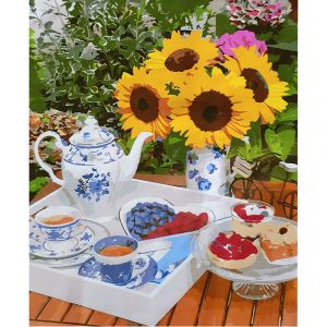 Картина за номерами Strateg ПРЕМІУМ Солоденьке з чаєм з лаком розміром 40х50 см (SY6672)