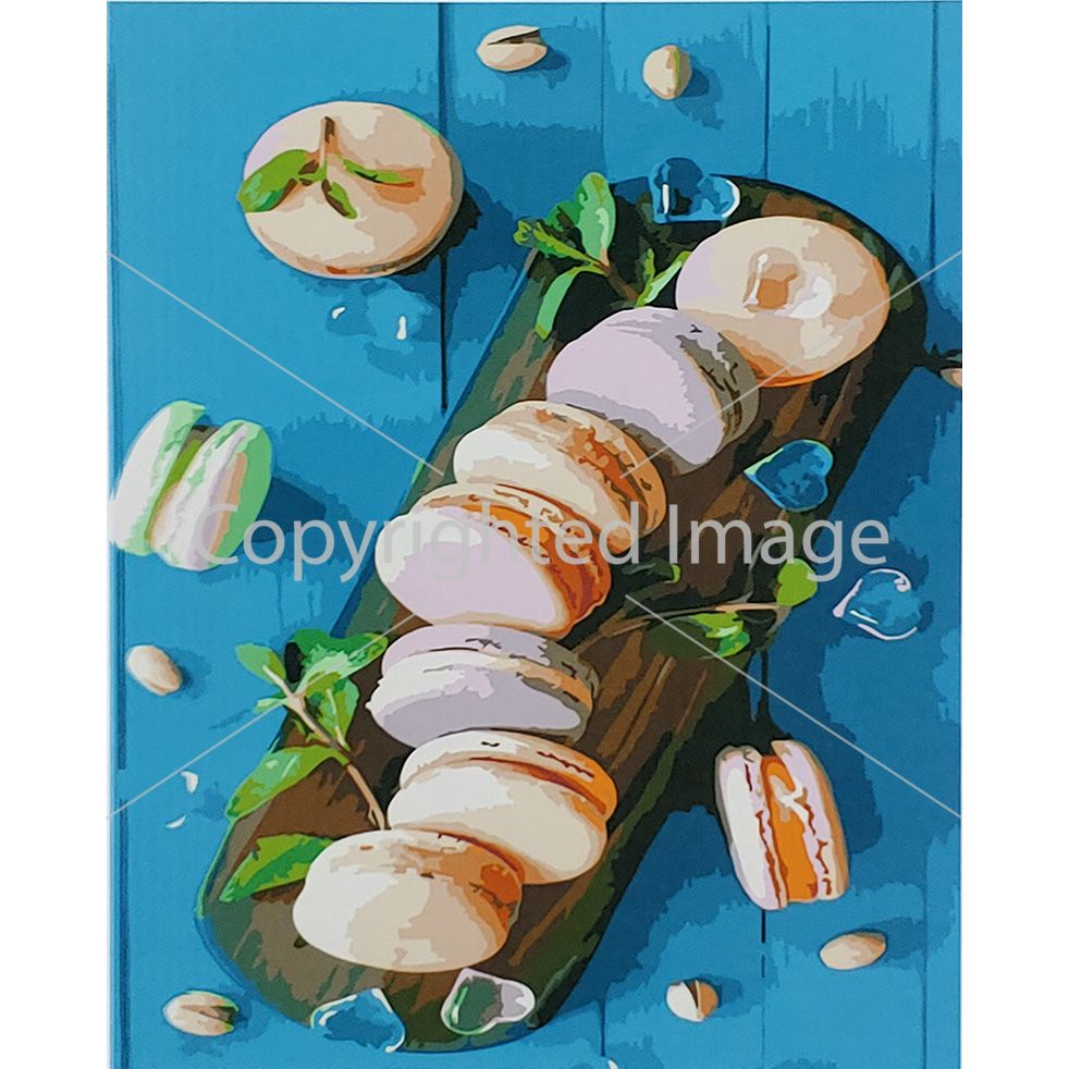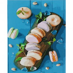 Картина за номерами Strateg ПРЕМІУМ Солоденькі макаруни з лаком розміром 40х50 см (SY6831)