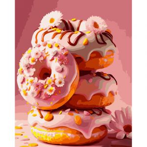 Картина за номерами Strateg ПРЕМІУМ Солодкі рожеві пончики розміром 40х50 см (GS916)