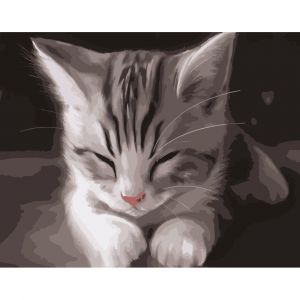 Картина за номерами Strateg ПРЕМІУМ Сонне кошеня розміром 40х50 см (DY191)