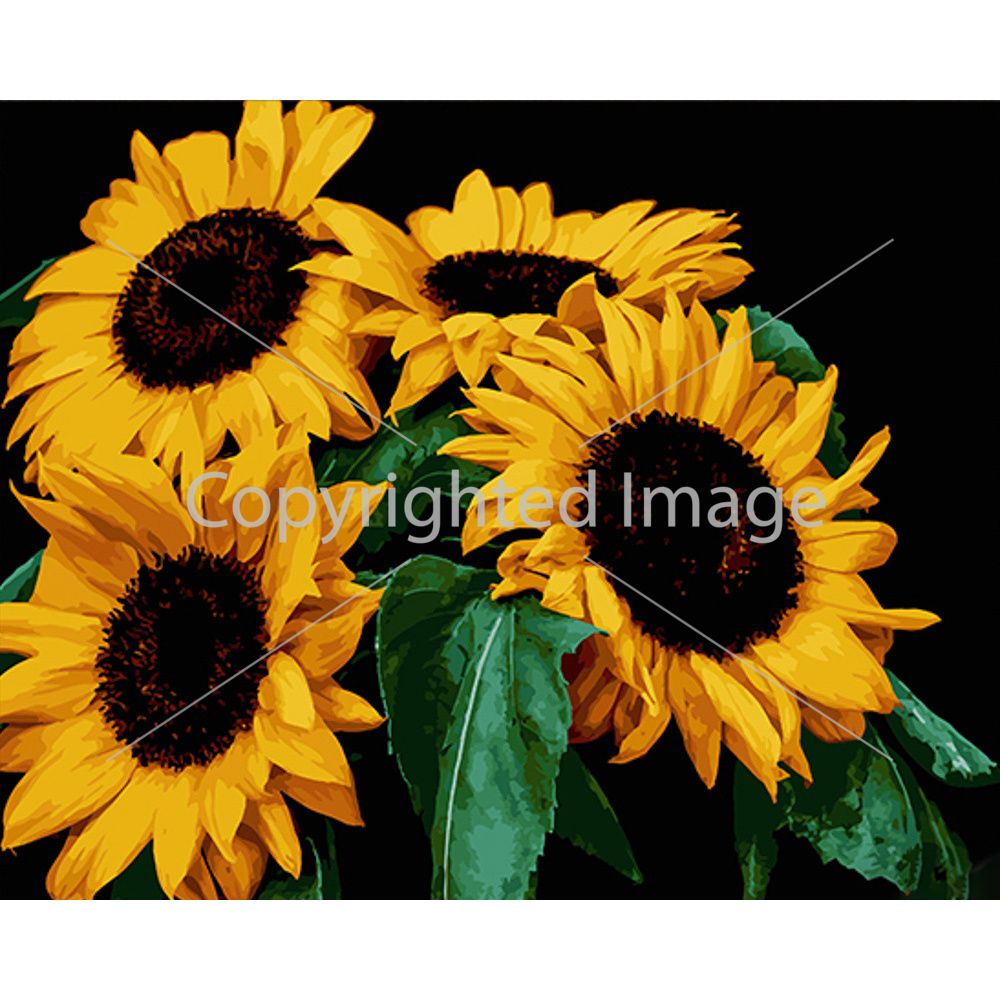 Картина за номерами Strateg ПРЕМІУМ Соняшники на чорному фоні розміром 40х50 см (AH1049)
