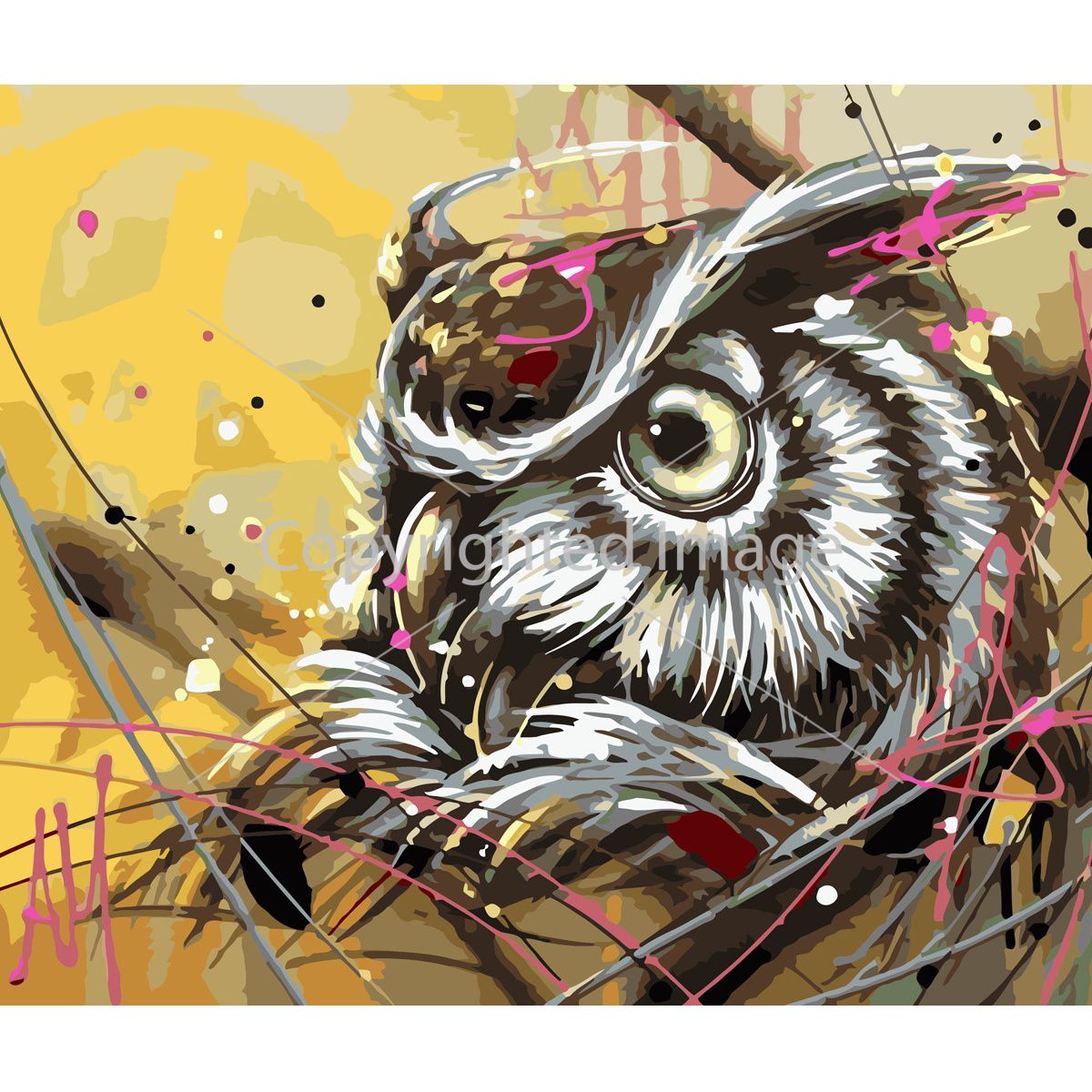 Картина за номерами Strateg ПРЕМІУМ Сова у лініях з лаком розміром 40х50 см (SY6676)