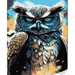 Картина за номерами Strateg ПРЕМІУМ Сова в окулярах з лаком та з рівнем розміром 30х40 см (SS1125)