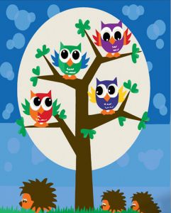 Картина за номерами Strateg ПРЕМІУМ Совенки та їжачки розміром 30х30 см (ES135)
