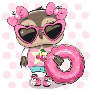 Картина за номерами Strateg ПРЕМІУМ Совеня з пончиком з лаком та з рівнем розміром 30х30 см (ES-0816)