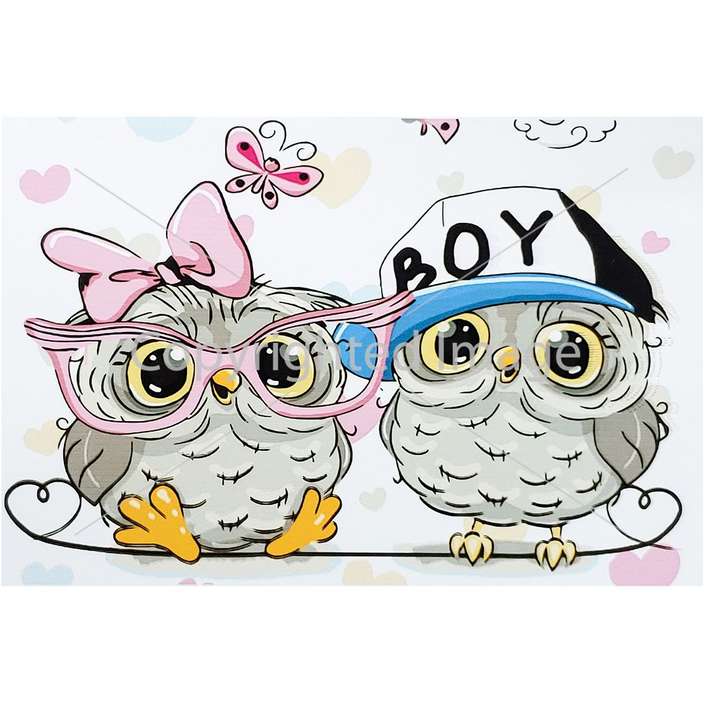 Картина за номерами Strateg ПРЕМІУМ Совушки хлопчик та дівчинка з лаком розміром 30х40 см (SS6666)