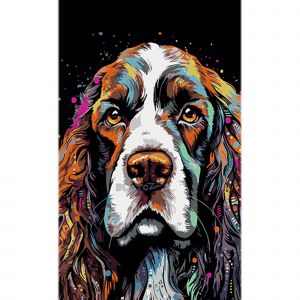 Картина за номерами Strateg ПРЕМІУМ Спаніель у кольорах на чорному фоні розміром 50х25 см (BH5025-8)