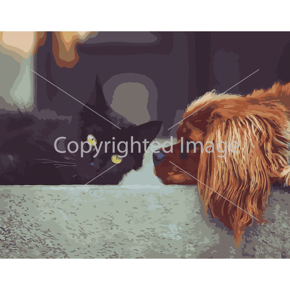 Картина за номерами Strateg ПРЕМІУМ Спаніель з чорним котом розміром 40х50 см (GS250)