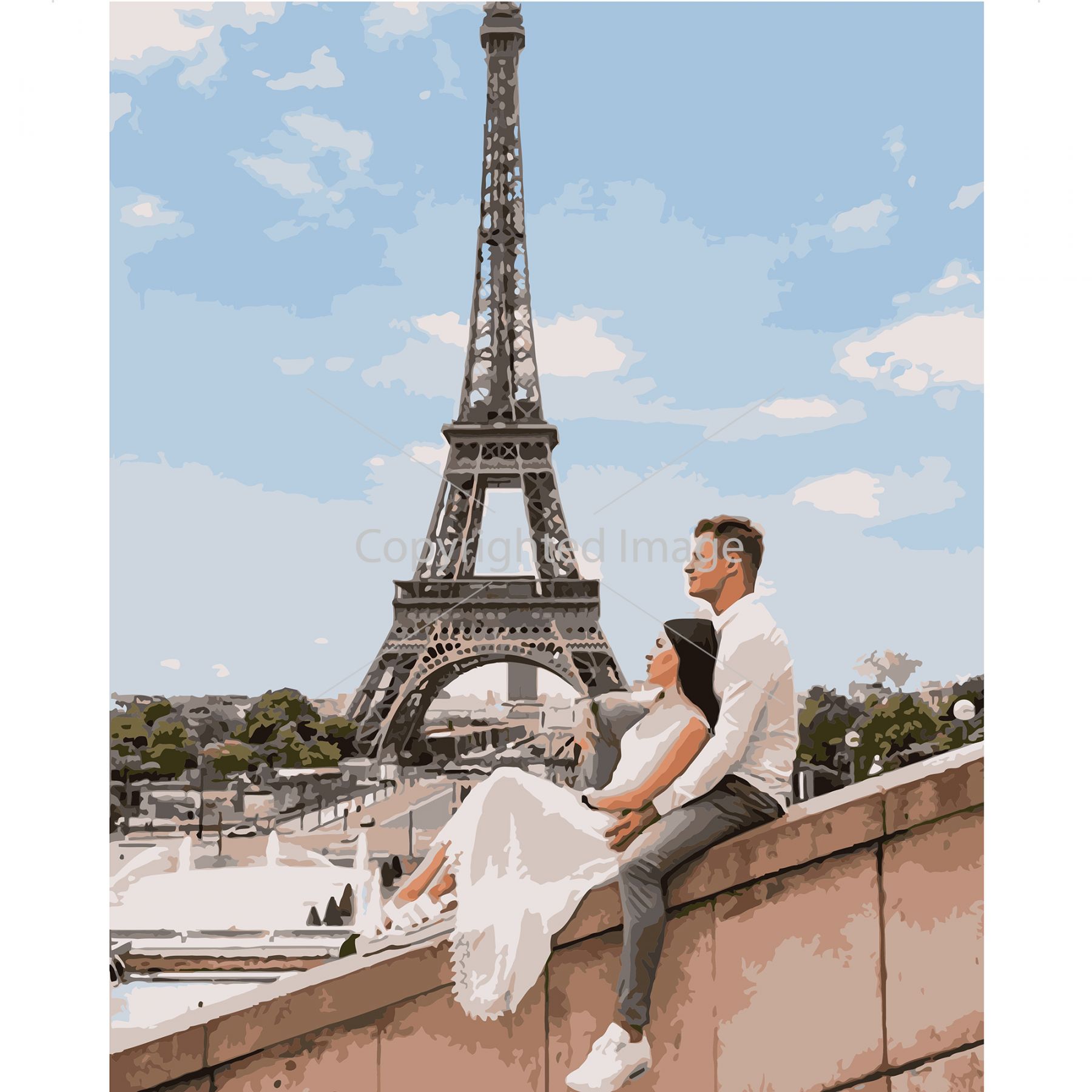 Картина за номерами Strateg ПРЕМІУМ Strateg Закохані біля Ейфелевої вежі з лаком розміром 40х50 см VA-1559