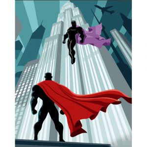 Картина за номерами Strateg ПРЕМІУМ Суперники у плащах з лаком розміром 30х40 см (SS6690)