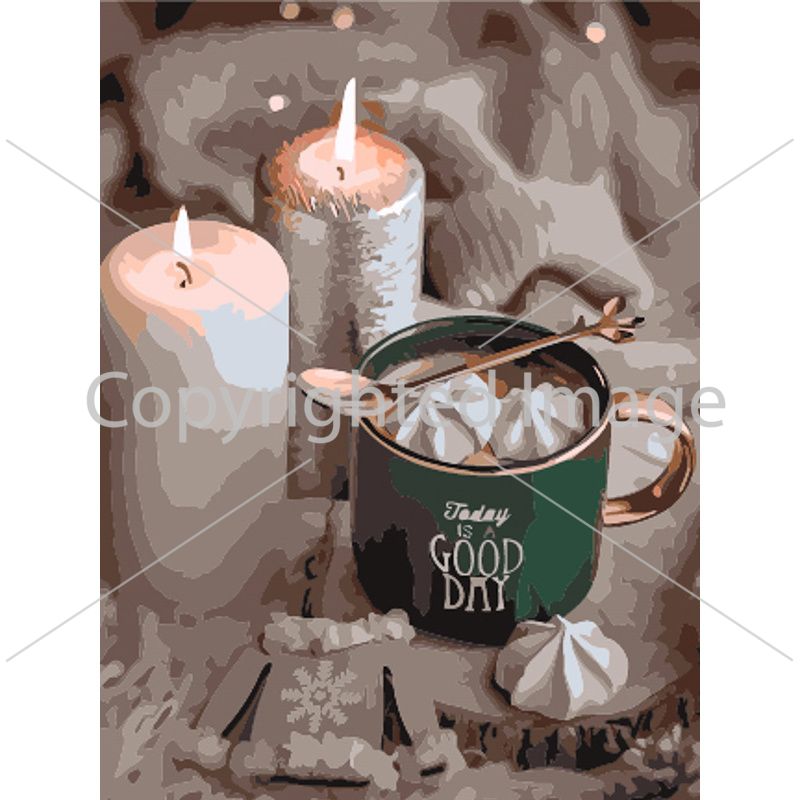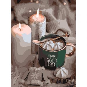 Картина за номерами Strateg ПРЕМІУМ Свічки та кава розміром 30х40 см (SS6829)