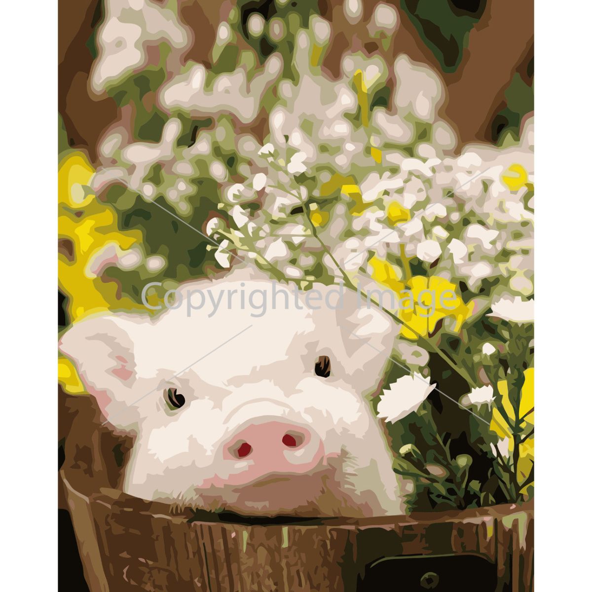 Картина за номерами Strateg ПРЕМІУМ Свинка в горшечку з лаком розміром 40х50 см VA-3692