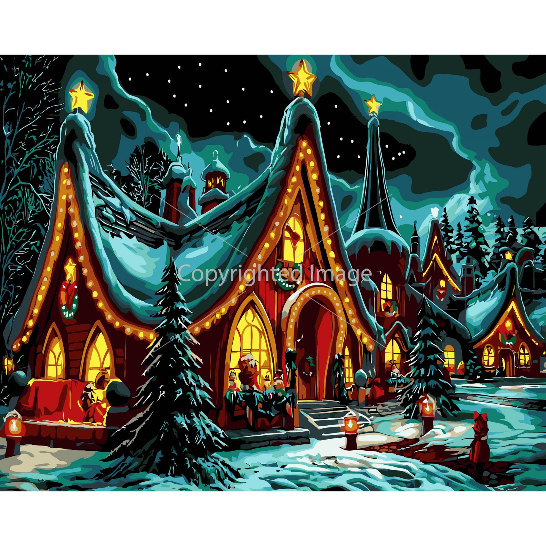 Картина за номерами Strateg ПРЕМІУМ Святковий будинок на чорному фоні розміром 40х50 см (AH1243)
