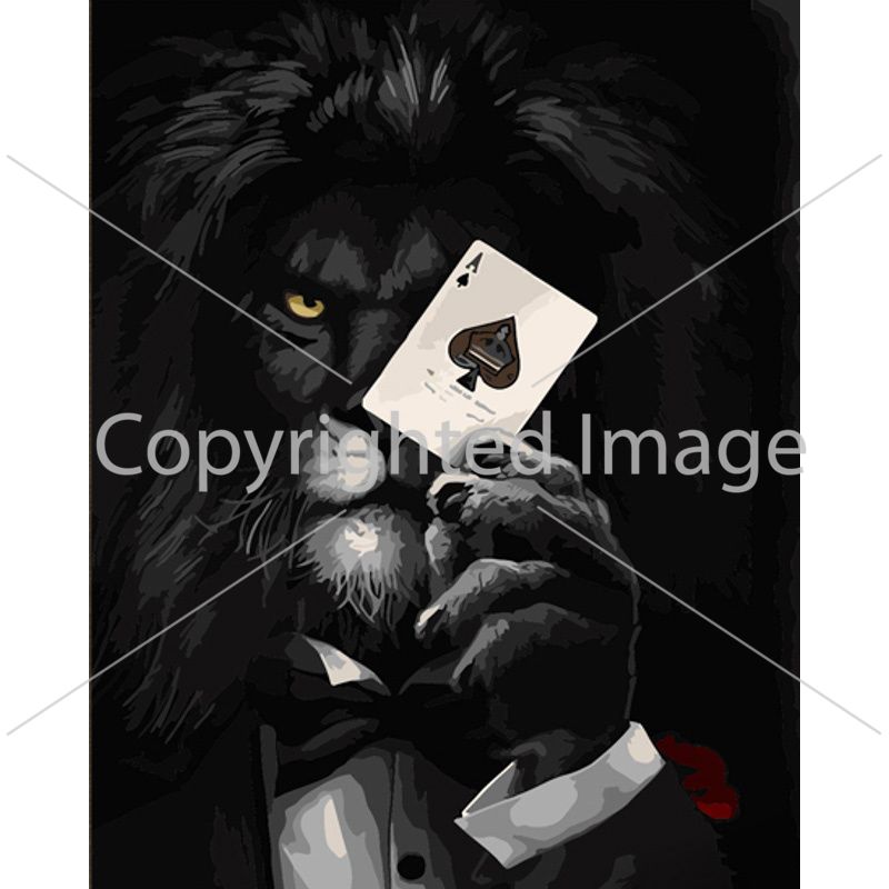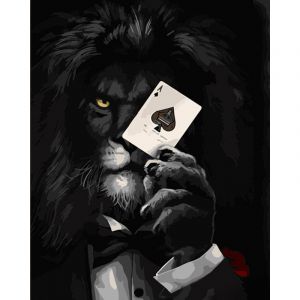Картина за номерами Strateg ПРЕМІУМ Темна сторона лева з лаком та з рівнем розміром 40х50 см (DY404)