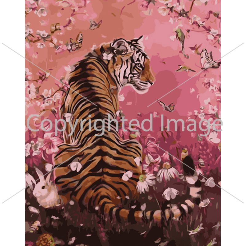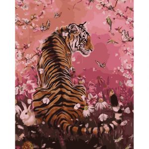 Картина за номерами Strateg ПРЕМІУМ Тигр на рожевому фоні розміром 40х50 см (GS918)