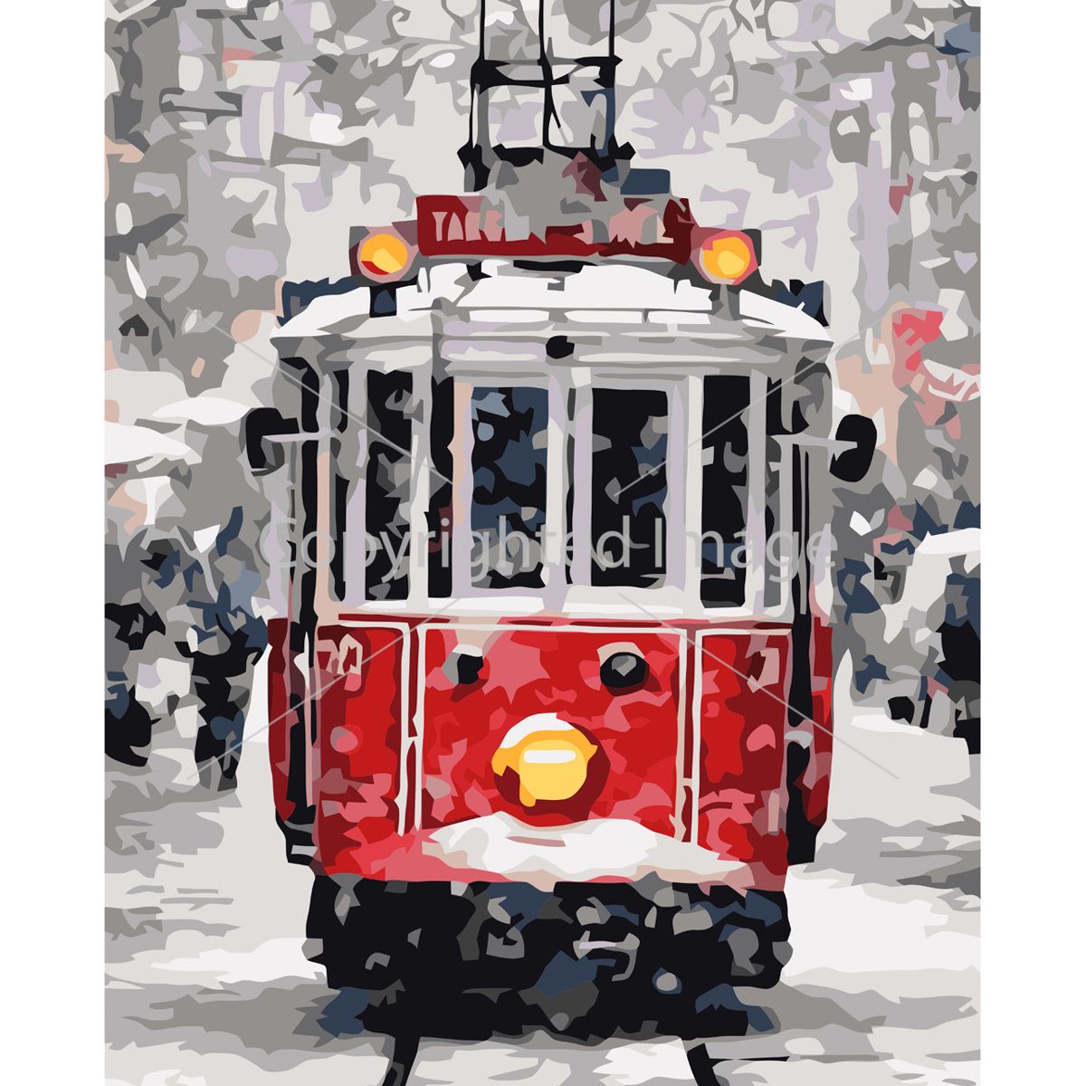 Картина за номерами Strateg ПРЕМІУМ Трамвай узимку з лаком розміром 40х50 см VA-3598