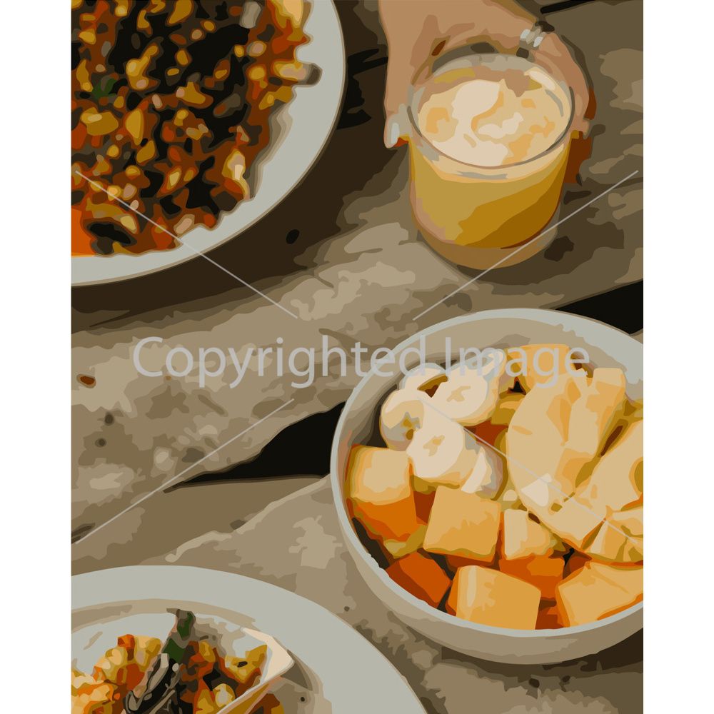 Картина за номерами Strateg ПРЕМІУМ Тропічний перекус розміром 40х50 см (GS273)