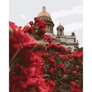 Картина за номерами Strateg ПРЕМІУМ Троянди біля Ісаакіївського собору з лаком розміром 40х50 см VA-3749