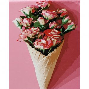 Картина за номерами Strateg ПРЕМІУМ Троянди в рожку з лаком розміром 40х50 см (SY6895)