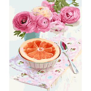 Картина за номерами Strateg ПРЕМІУМ Цитрус на десерт з лаком розміром 40х50 см (SY6629)