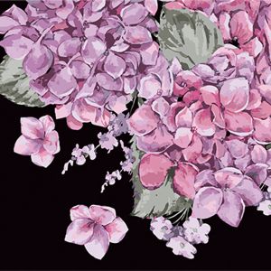 Картина за номерами Strateg ПРЕМІУМ Цвітіння гортензій на чорному фоні розміром 40х40 см (AV4040-29)