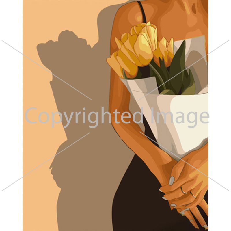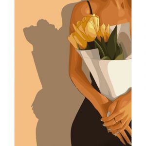 Картина за номерами Strateg ПРЕМІУМ Тюльпани в руках розміром 40х50 см (GS764)
