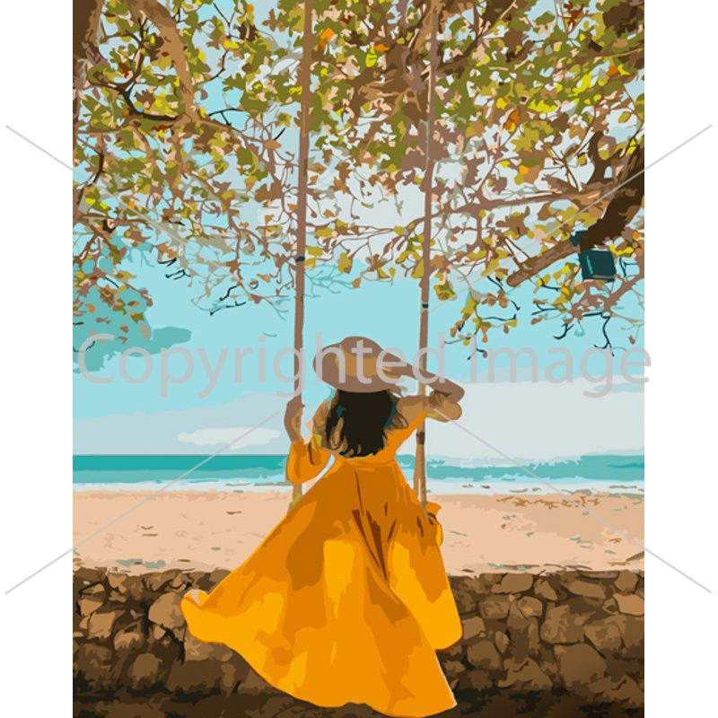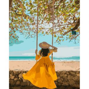 Картина за номерами Strateg ПРЕМІУМ У жовтій сукні біля моря розміром 40х50 см (GS1026)