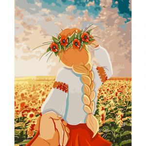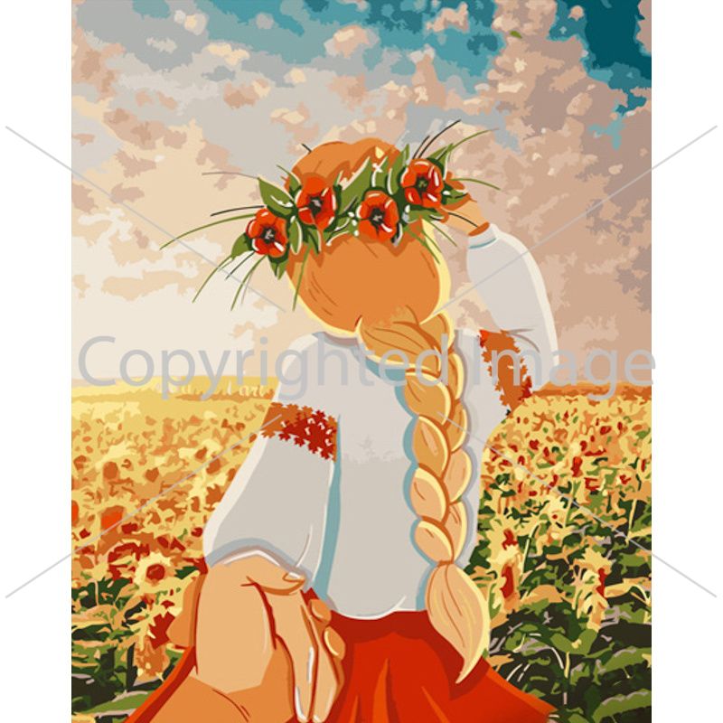 Картина за номерами Strateg ПРЕМІУМ Українка в полі розміром 40х50 см (GS690)