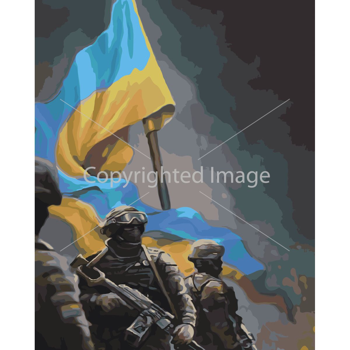 Картина за номерами Strateg ПРЕМІУМ Українські воїни з лаком розміром 40х50 см (SY6539)