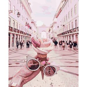 Картина за номерами Strateg ПРЕМІУМ В рожевих окулярах з лаком розміром 40х50 см SY6172