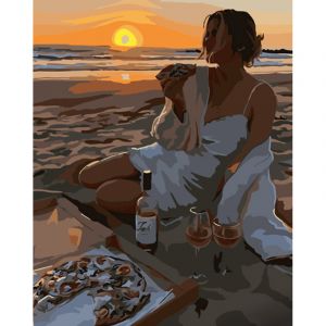 Картина за номерами Strateg ПРЕМІУМ Вечеря на морі розміром 40х50 см (GS848)