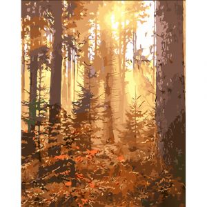 Картина за номерами Strateg ПРЕМІУМ Вечір у сосновому лісі з лаком розміром 30х40 см (SS6790)